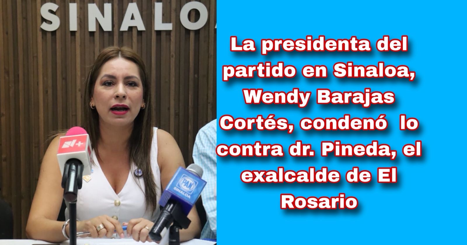 Culiacán,Sin., sept. 25 del 2025.-La presidenta del PAN Sinaloa, Wendy Barajas Cortés, condenó el ataque armad0 en contra del Dr. Antonio Pineda, ex alcalde de El Rosario y panista reconocido por su compromiso con la ciudadanía.