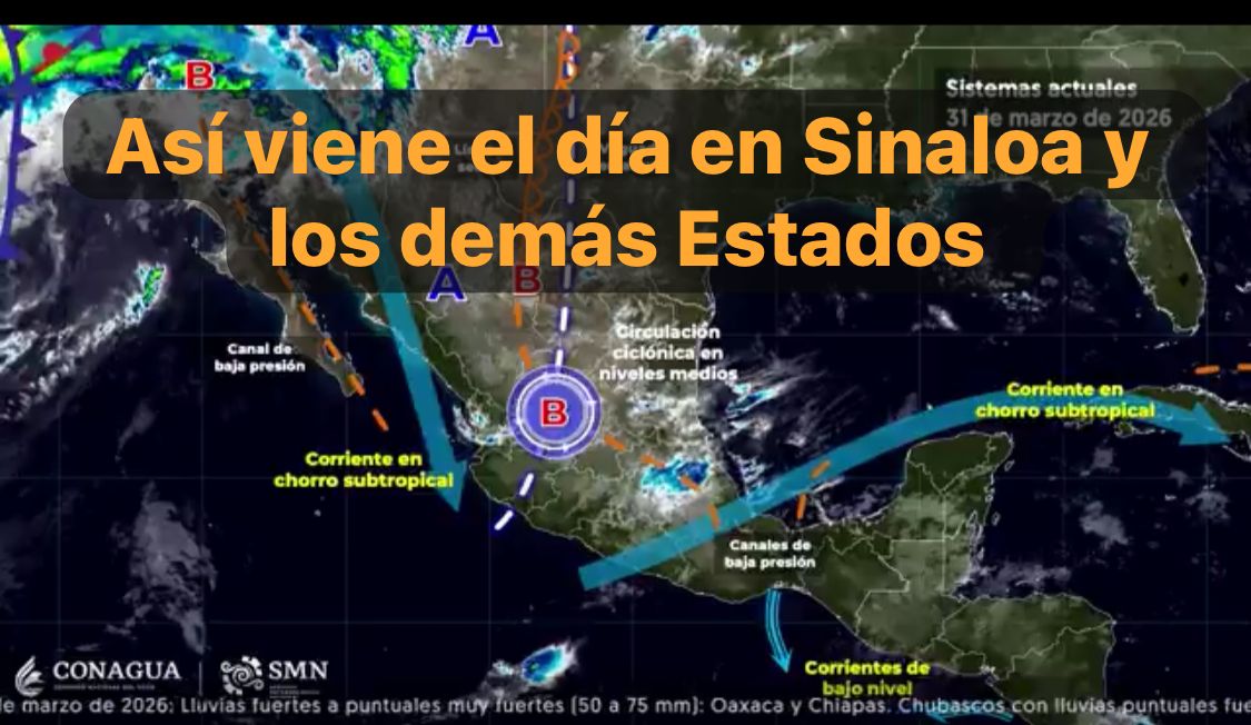 México, 31 marzo 2026.-Para hoy, una circulación ciclónica en niveles medios de la atmósfera, sobre el occidente de la mesa central, y con tendencia a disiparse en el transcurso del día; una vaguada en altura sobre el centro y noreste de la República Mexicana, ambos en interacción con una línea seca en el norte de Coahuila y Chihuahua; canales de baja presión en el interior del país; la corriente en chorro subtropical e inestabilidad atmosférica, ocasionarán lluvias fuertes en el noreste, este centro y sur de México con lluvias puntuales muy fuertes en Oaxaca y Chiapas, con posible caída de granizo.