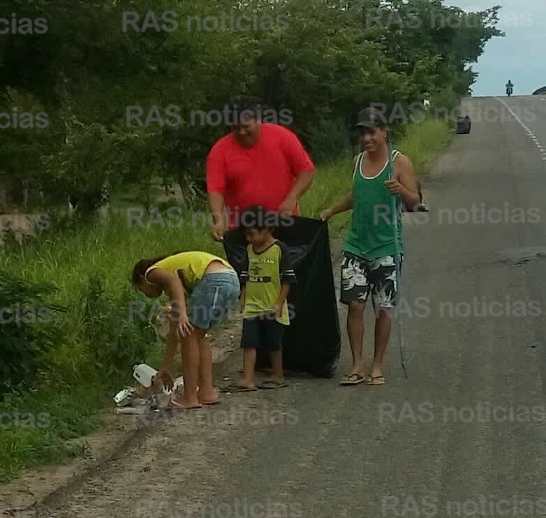 De acuerdo al mensaje y a las imágenes enviadas a esta pagina de noticias, un padre, una madre,sus hijos y sus nietos del Ejido El Castillo, tomaron las bolsas negras y se fueron a caminar por las orillas de la México 15.