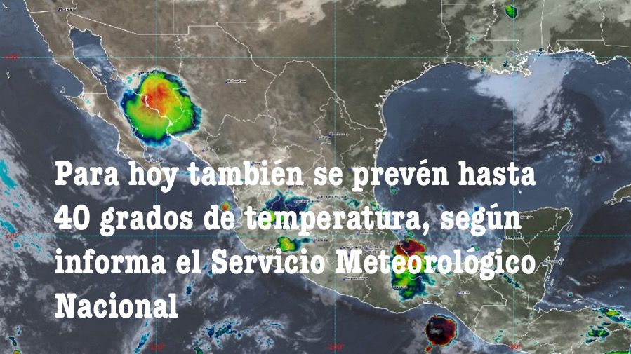 Temperaturas máximas de 35 a 40 °C: Baja California Sur, Sinaloa, Chihuahua, Durango, Nayarit, Jalisco, Colima, Michoacán, Morelos, Guerrero, Oaxaca, Chiapas, Tabasco, Campeche, Yucatán y Quintana Roo.