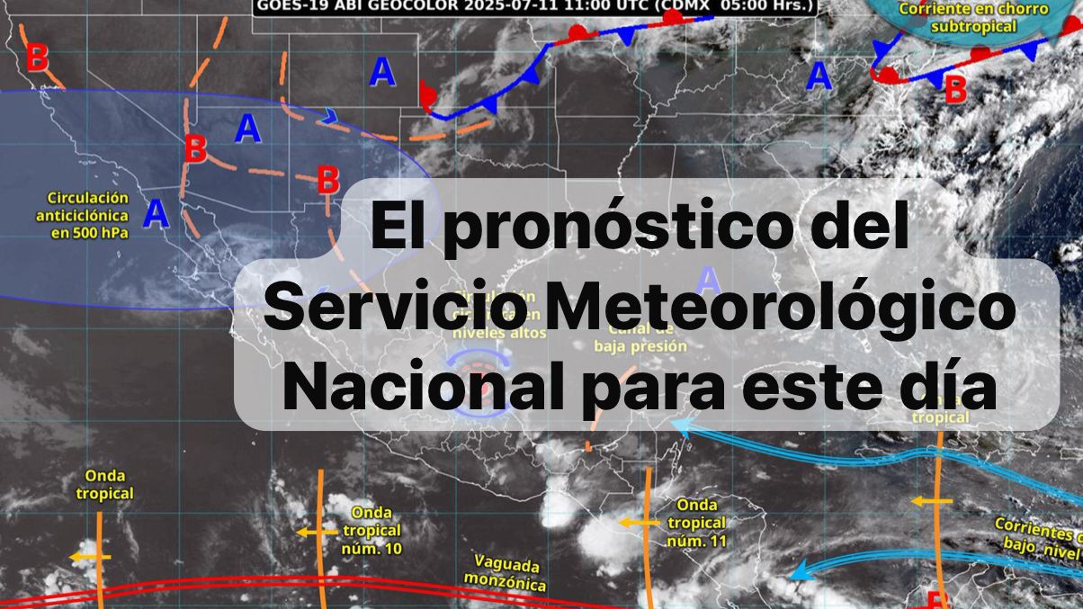México, 11 julio 2025.-Este día, el monzón mexicano en el noroeste de México, mantendrá lluvias fuertes a puntuales muy fuertes en Sonora, Chihuahua, Durango, Sinaloa y Nayarit, así como lluvias aisladas en Baja California Sur.