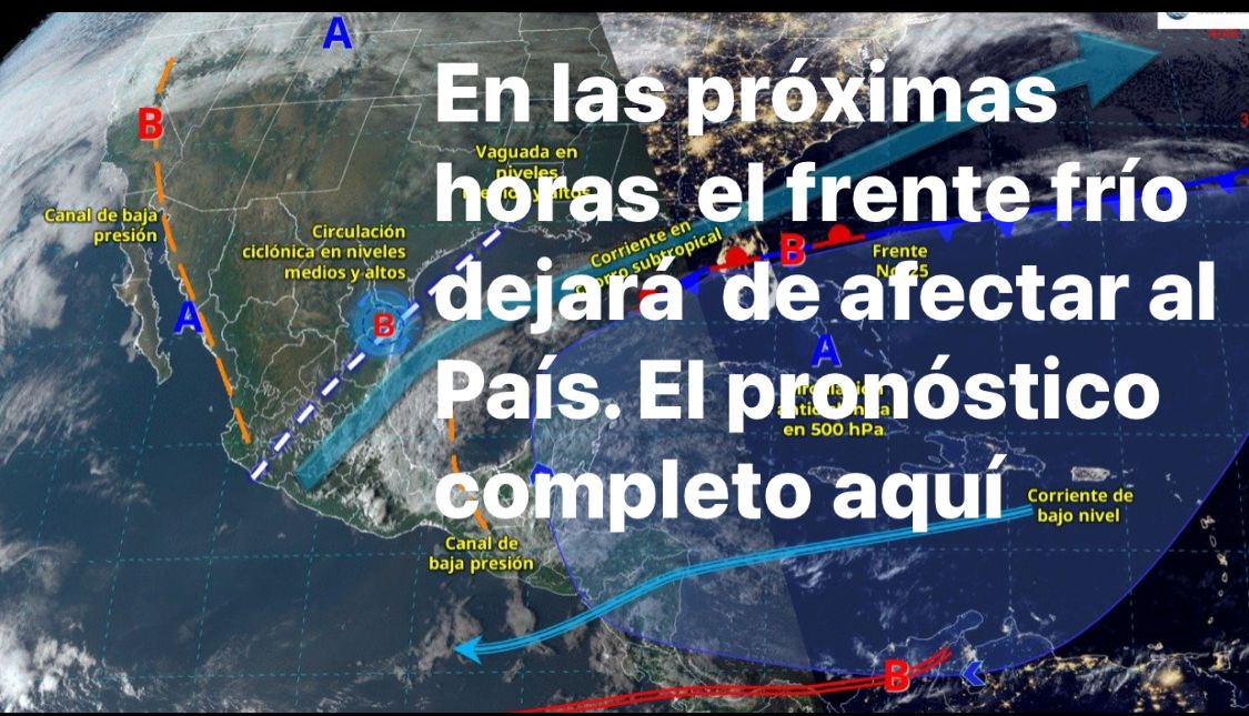 Las lluvias pronosticadas se acompañarán con descargas eléctricas y posible caída de granizo. El sistema frontal No. 25 se extenderá como estacionario sobre el oriente del golfo de México y dejará de afectar al país, mientras que la masa de aire polar asociada modificará sus características térmicas.