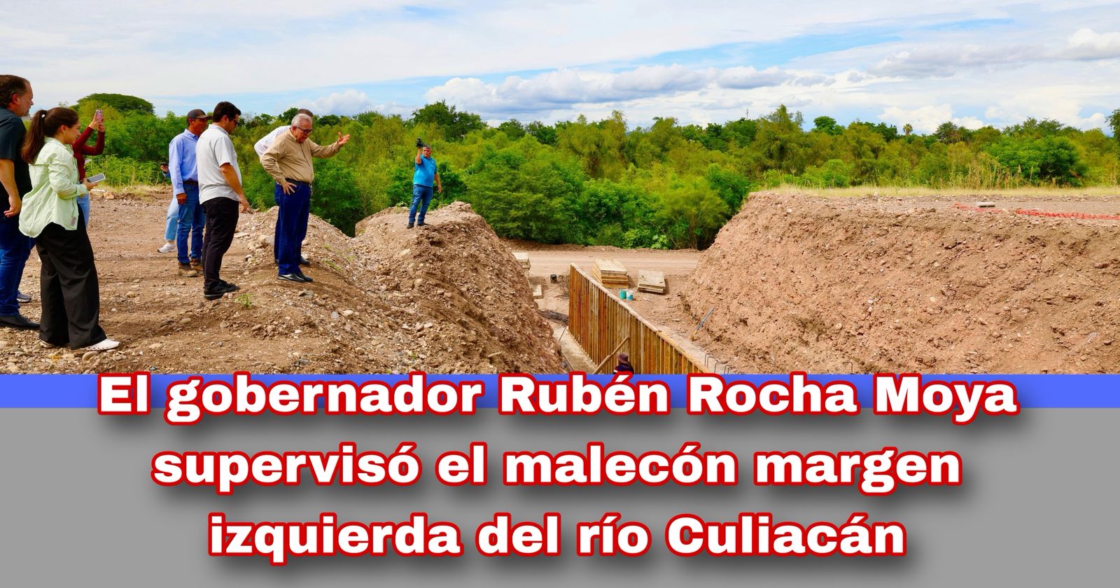 Con una longitud de más de 5 kilómetros, el Malecón margen izquierda del río Culiacán, es la obra insignia del gobierno de Rocha Moya, en la cual, se trabaja conforme a los tiempos de ejecución establecidos registrando un avance del 30%, por lo que se contempla que, a partir del mes de noviembre se empiecen a ver las primeras lozas de concreto hidráulico. Cabe agregar que, para dar dinamismo a la obra, se tienen proyectadas la construcción de gazas de distribución vial.