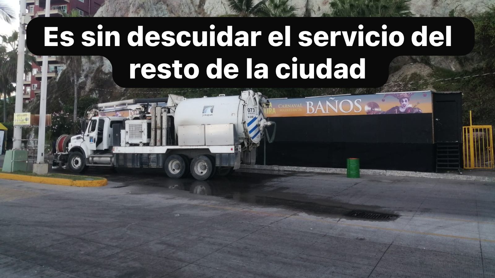 Mazatlán, Sin., 15 feb. 2026.- El Gobierno Municipal, que dirige la Presidenta Estrella Palacios Domínguez, y JUMAPAM, mantienen un operativo especial de sondeo y desazolve a las redes sanitarias y baños públicos en la zona de Olas Altas, calles del Centro Histórico aledañas a la Plazuela Machado y en las inmediaciones del Estadio “Teodoro Mariscal”.