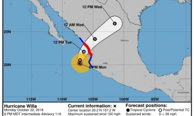 El huracán Willa es un monstruo, es ya categoría cinco y continúa su avance en el Océano Pacífico, en Ultimo reporte es hacia las costas del...