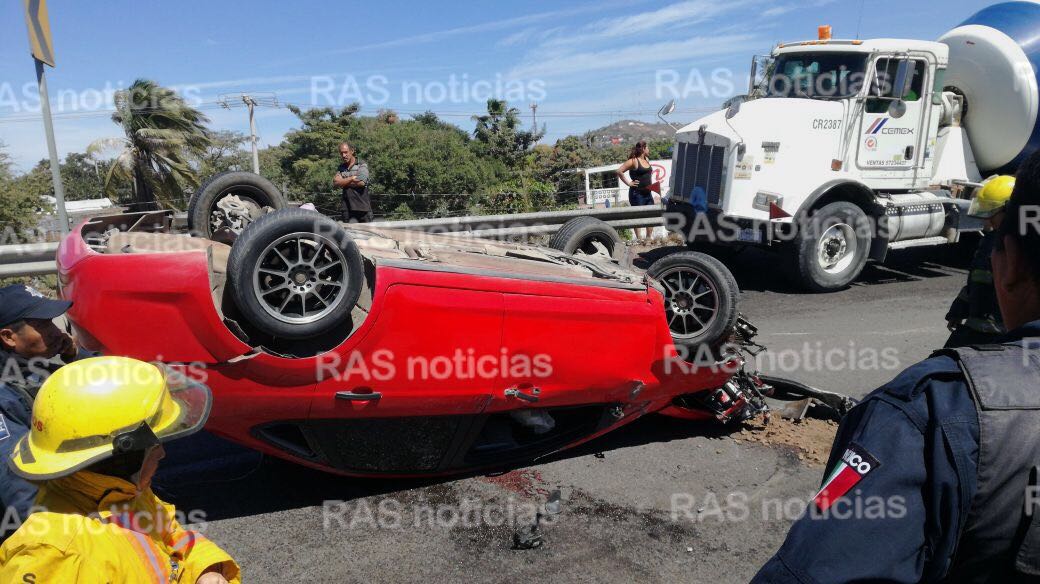 Un accidente registrado en el paso superior del café marino dejo daños totales en un automóvil Ford Focus color rojo y una persona con probable fractura...
