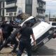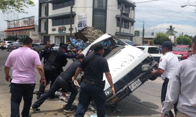 Volcado sobre el costado izquierdo y casi en sentido opuesto terminó una camioneta repartidora de agua momentos después de ser chocada por una camioneta Chevrolet Trax...