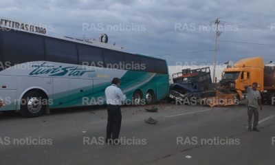 Un autobús turístico, una camioneta cargada con tomate y un tráiler protagonizaron un aparatoso accidente en la salida norte de Mazatlán, en el Ejido El Venadillo...