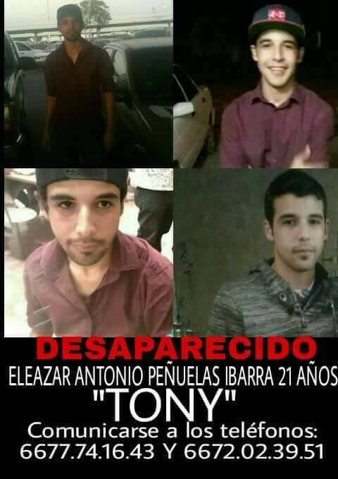 Salió de Culiacán hacia Mazatlán a bordo del tren de carga y desde el día nueve de mayo está desaparecido. Se llama Eleazar Antonio Peñuelas...