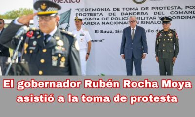 Culiacán, Sin., 4 julio 2025.- El gobernador Rubén Rocha Moya asistió a la toma de protesta del nuevo coordinador estatal de la Guardia Nacional en Sinaloa,...