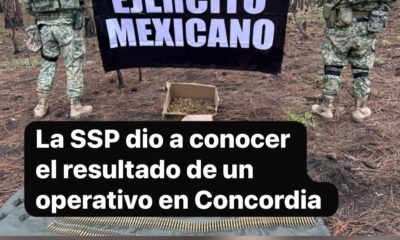 Concordia, Sin.,11 oct. 2025.-Aseguraron cargadores, cartuchos, equipo táctico y presunta drog@. Durante trabajos de reconocimiento terrestre en el poblado La Venada, en el municipio de Concordia,...
