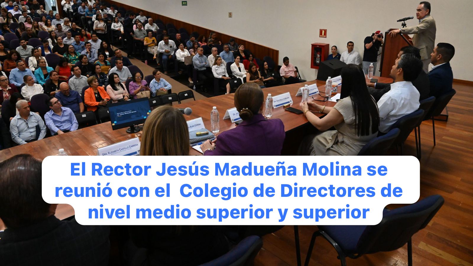 En reunión de trabajo del Colegio de Directores de nivel medio superior y superior de todo el estado el Rector, doctor Jesús Madueña Molina, expresó que desde este momento se tienen que abordar temas que deben resolverse con el consenso de todas y todos los universitarios en las instancias correspondientes en un periodo de aquí a diciembre para estar acorde con las políticas federales y sobre todo en lo referente a la situación financiera de la Universidad donde el panorama que se avecina es más complicado.