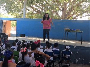 En ambas visitas, la promotora cultural Ángela Camacho provocó que los niños echarán a volar la imaginación y despertó su interés por la literatura a través de la lectura de varios textos incluidos en el programa “Cuéntame un cuento…te lo cuento”.