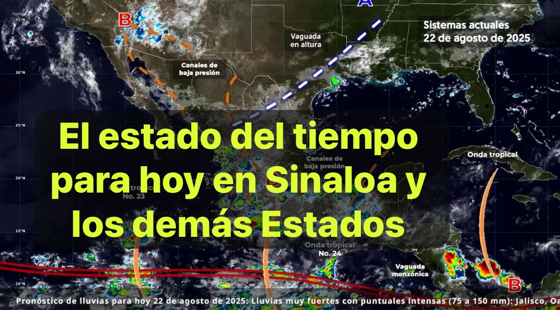 México, 22 agosto 2025.-Este día, el monzón mexicano mantendrá las condiciones para lluvias fuertes con puntuales muy fuertes en el noroeste del país; así como chubascos en la península de Baja California.