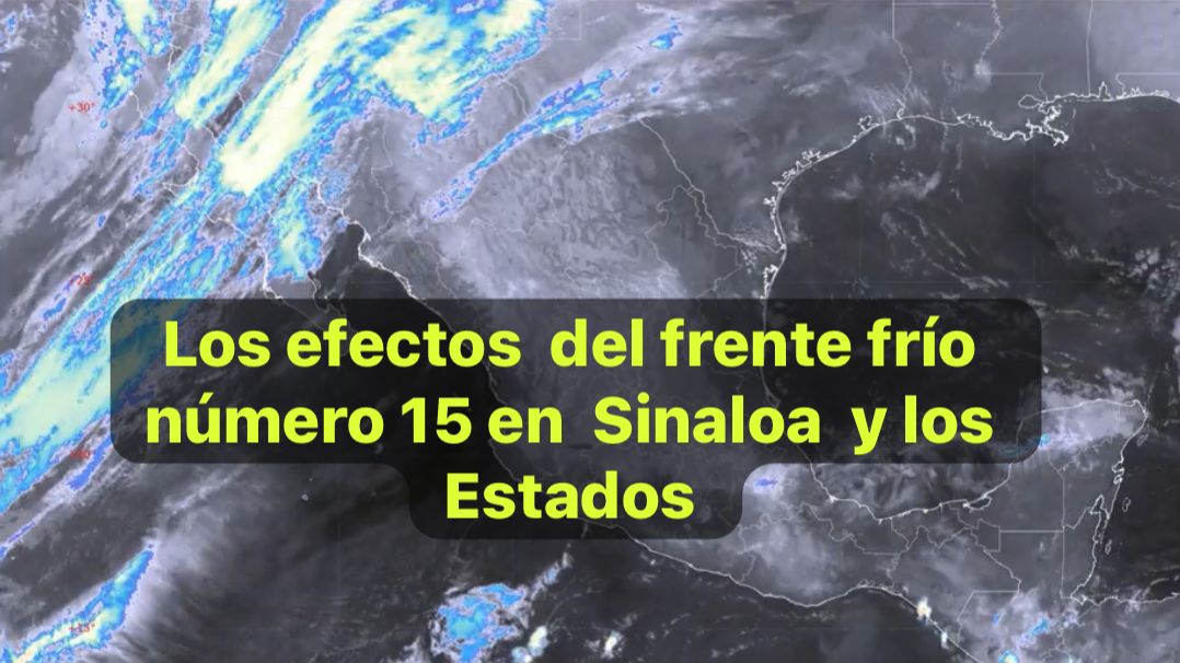 México,18 nov.2025.-Este día, el frente frío número 15 se desplazará sobre el noroeste del territorio nacional, y en interacción con una vaguada polar, una circulación ciclónica en niveles medios y altos de la atmósfera, y las corrientes en chorro polar y subtropical, ocasionará lluvias puntuales fuertes en Baja california (norte y centro) y Sonora (noroeste y norte), chubascos en Baja California Sur y Chihuahua,