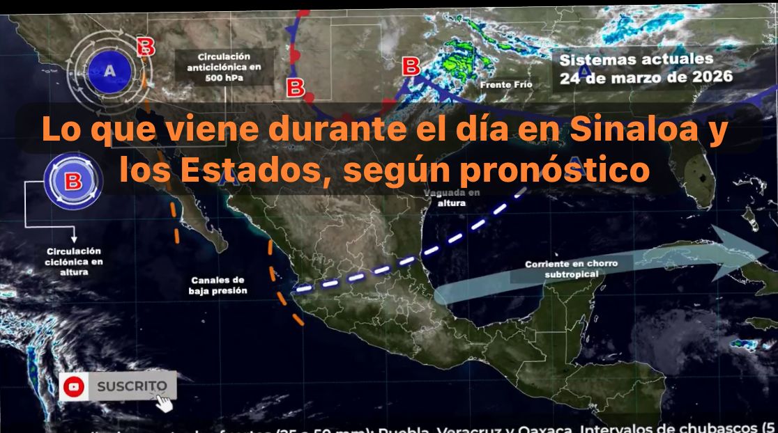 México, 24 marzo 2026.-Este día, una vaguada en altura, en combinación con el ingreso de humedad del océano Pacífico y golfo de México, ocasionarán lluvias y chubascos con posibles descargas eléctricas en estados del noreste, occidente, centro, oriente y sur del territorio mexicano, además de lluvias puntuales fuertes en Puebla, Veracruz y Oaxaca.