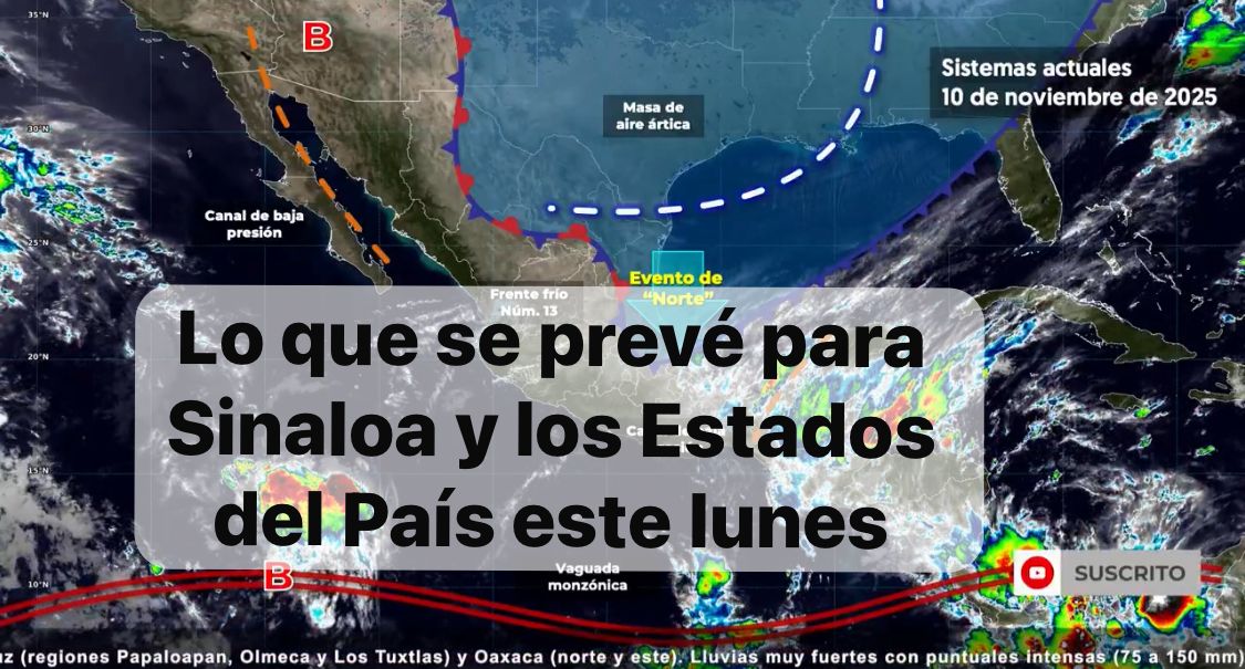 México,10 nov. 2025.Este día, el frente frío número 13 recorrerá la península de Yucatán, a su vez, la masa de aire ártica cubrirá la mayor parte del territorio mexicano, generando lluvias fuertes a intensas en el sureste del país, incluida dicha península; así como lluvias puntuales torrenciales en Veracruz (regiones Papaloapan, Olmeca y Los Tuxtlas) y Oaxaca (norte y este); las cuales podrían incrementar los niveles de ríos y arroyos, así como generar encharcamientos, deslaves e inundaciones.