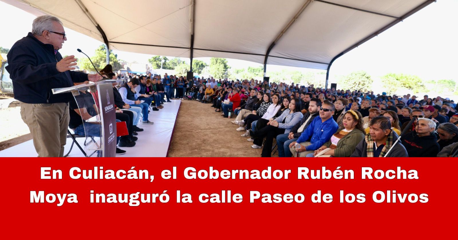 Culiacán, Sin. 1 feb. 2025.- En medio de un ambiente de alegría y calidez humana, a fin de atender la necesidad de una espacio digno para las personas que durante años han vivido en el rezago y la marginación social, que se han visto en la necesidad de invadir, en asentamientos irregulares, el Gobernador Rubén Rocha Moya, acompañado del Alcalde de Culiacán Juan de Dios Gámez Mendívil, la Secretaria de Bienestar y Desarrollo Sustentable María Inés Pérez Corral y Roberto Valle Leal director del Instituto Municipal de Vivienda inauguraron la calle Paseo de los Olivos que dará acceso a Bienestar Norte, un espacio destinado para atender a los precaristas, mediante la venta de lotes urbanizados en el sector Alamedas de Culiacán.