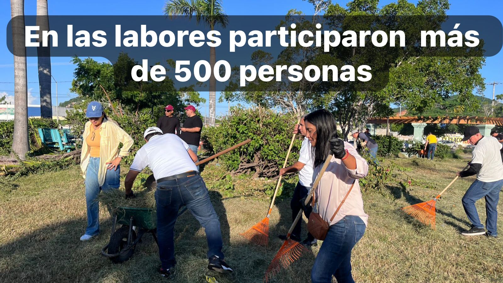 En las labores participaron más de 500 personas, entre colaboradores del Gobierno Municipal, jóvenes conscriptos del Servicios Militar, elementos de las fuerzas armadas y ciudadanos voluntarios, bajo el liderazgo de la Presidenta Estrella Palacios Domínguez.