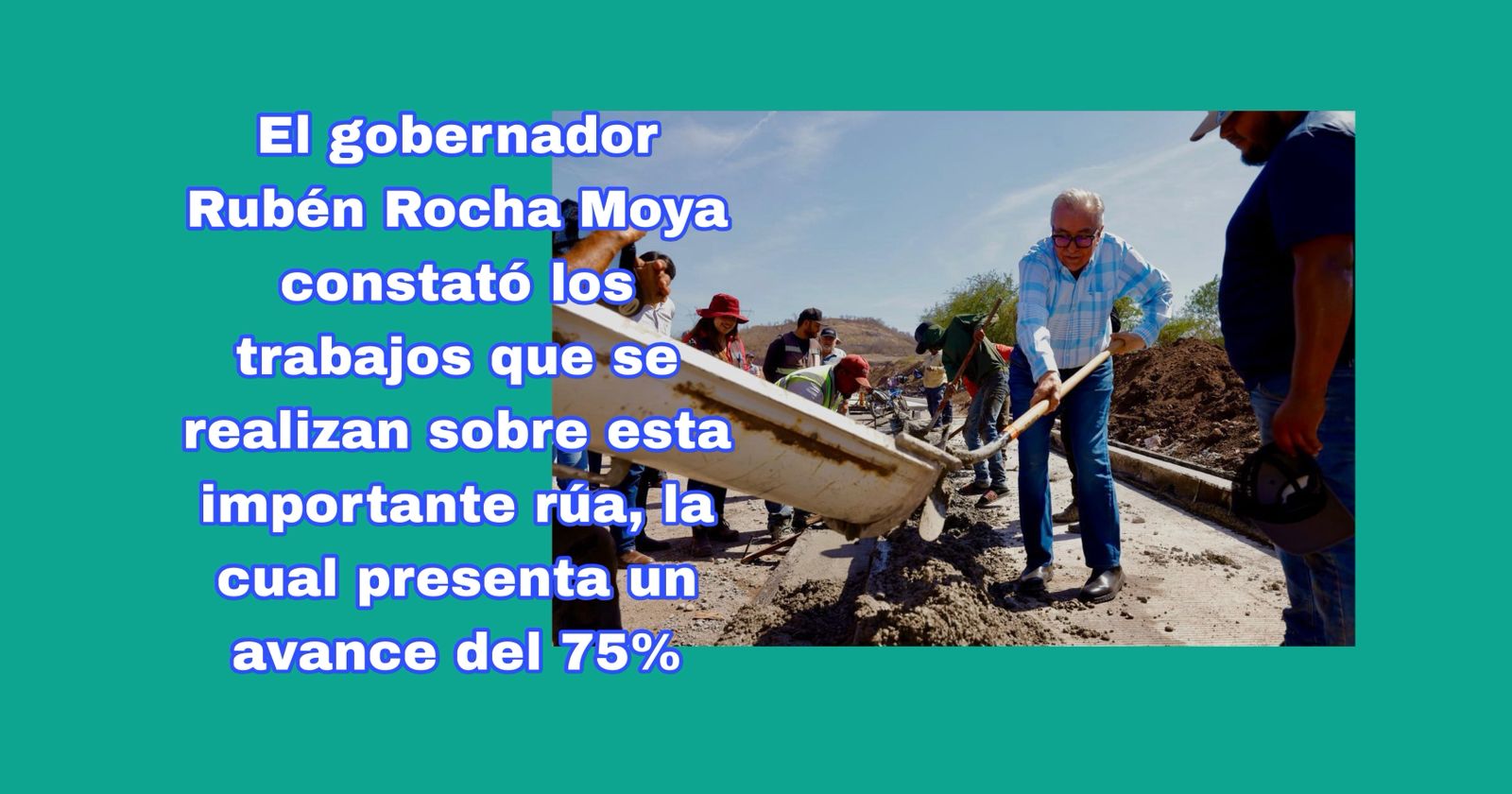 Durante su recorrido, el Gobernador Rocha, además de saludar, conversar y echar unas paladas de mezcla con los trabajadores, constató los trabajos que se realizan sobre esta importante rúa, la cual presenta un avance del 75% y estará concluida para el mes de septiembre.