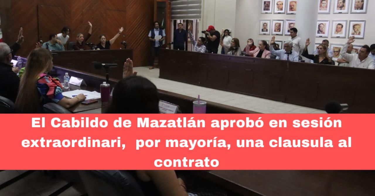 Mazatlán, Sin., 17 dic. 2025.– El Cabildo de Mazatlán aprobó por mayoría la suscripción del adendum al contrato de arrendamiento de bienes muebles e inmuebles con la empresa Drakkar Aquariums, S.A.P.I. de C.V., a través de su representante legal.