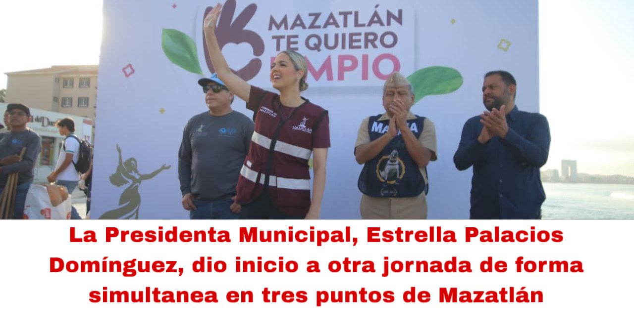 Mazatlán, Sin., 4 oct. 2025.– El objetivo del programa “Mazatlán te quiero limpio”, es recuperar espacios y hacer que Mazatlán siga brillando, precisó la Presidenta Municipal, Estrella Palacios Domínguez, al iniciar de manera simultánea la décima jornada de limpieza en tres puntos estratégicos de la ciudad.