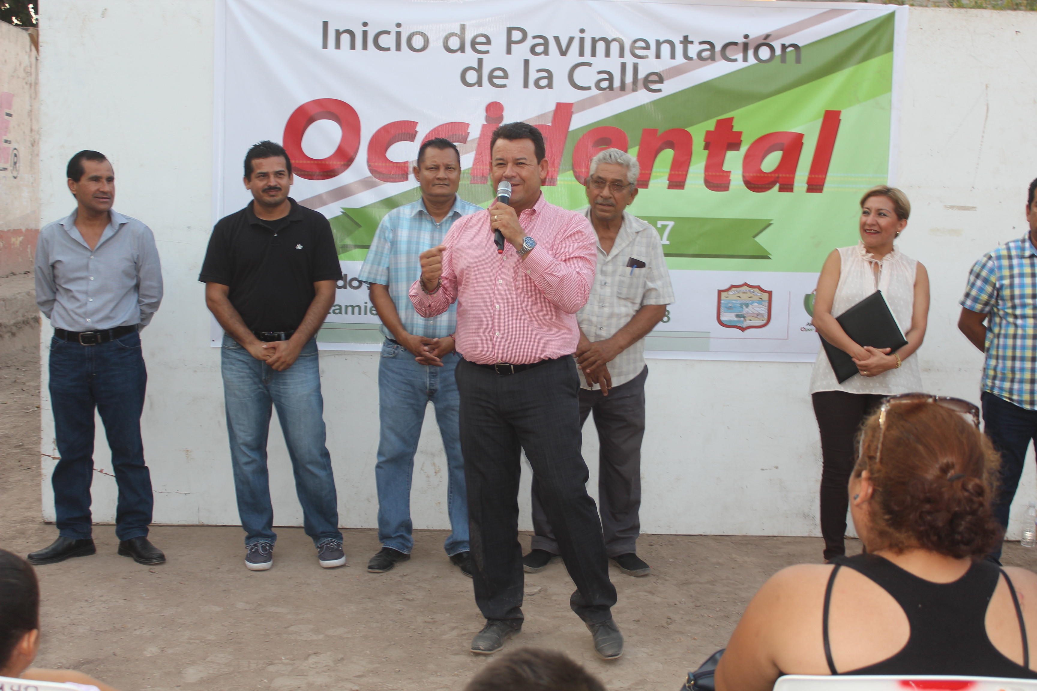 ESCUINAPA.- El Alcalde, Hugo Enrique Moreno Guzmán, acompañado por funcionarios públicos y beneficiarios, dio el banderazo con el iniciaron los trabajos de pavimentación de la calle...