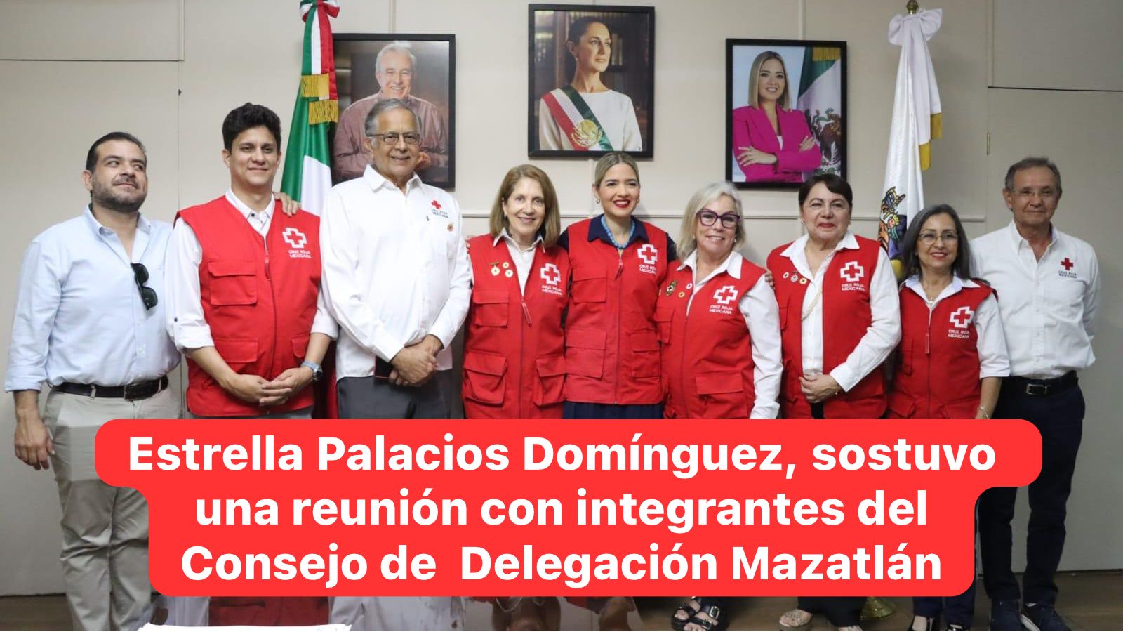 Mazatlán, Sin., 3 marzo 2026.– La Presidenta Municipal, Estrella Palacios Domínguez, sostuvo la tarde de este martes una reunión con integrantes del Consejo de Cruz Roja Mexicana Delegación Mazatlán, encabezado por su Presidenta, Wendy Hardouin.