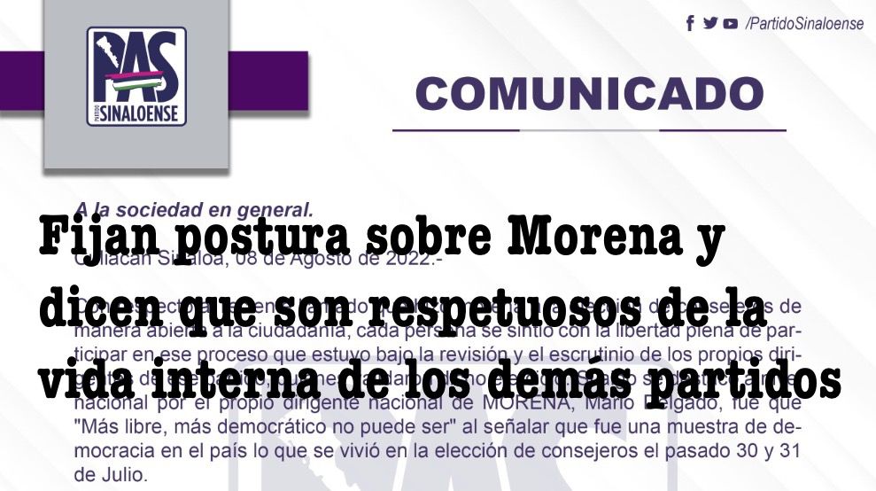 En el Partido Sinaloense, no compartimos los señalamientos de intromisión que ahora se señalan hacia nuestro instituto político, porque reiteramos que en nuestros principios y nuestros estatutos valoramos ser respetuosos de la vida interna de los demás partidos políticos.