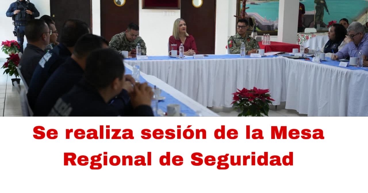 Mazatlán, Sin., 9 dic. 2025.– La Presidenta Municipal, Estrella Palacios Domínguez, participó la mañana de este martes en una nueva sesión de la Mesa Regional de Seguridad y Construcción de Paz, realizada en las instalaciones de la Tercera Región Militar. Durante el encuentro, autoridades de los tres niveles de gobierno revisaron las estrategias operativas que se implementarán durante la próxima temporada decembrina.