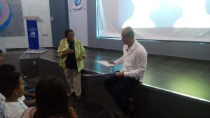 La maestra Ángeles Cruz Morelos del departamento educativo de Acuario Mazatlán fungió como anfitriona del investigador de la UNAM, pionero en la investigación biomédica a nivel molecular.