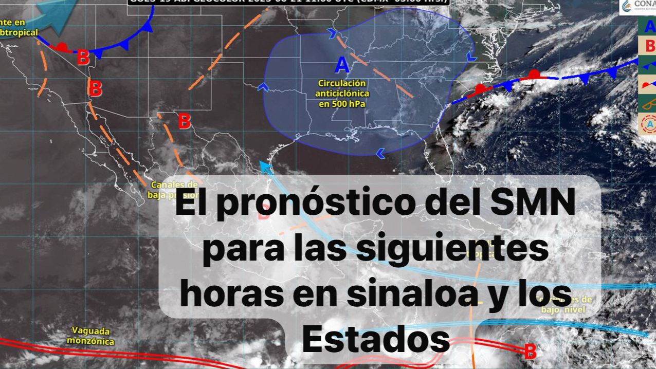 Pacífico Norte: Por la mañana, cielo parcialmente nublado en Sonora y nublado en Sinaloa; ambiente cálido, así como templado a fresco en zonas serranas y con bancos de niebla en zonas costeras de Sonora. Durante la tarde, cielo nublado con lluvias puntuales intensas en Sinaloa y puntuales fuertes en Sonora, acompañadas con descargas eléctricas y caída de granizo, las cuales podrían originar el incremento en los niveles de ríos y arroyos, deslaves, inundaciones, encharcamientos y visibilidad reducida; ambiente muy caluroso. Viento del oeste y suroeste de 30 a 40 km/h con rachas de 50 a 70 km/h y posibles tolvaneras en el norte de Sonora, así como rachas de hasta 45 km/h en Sinaloa.