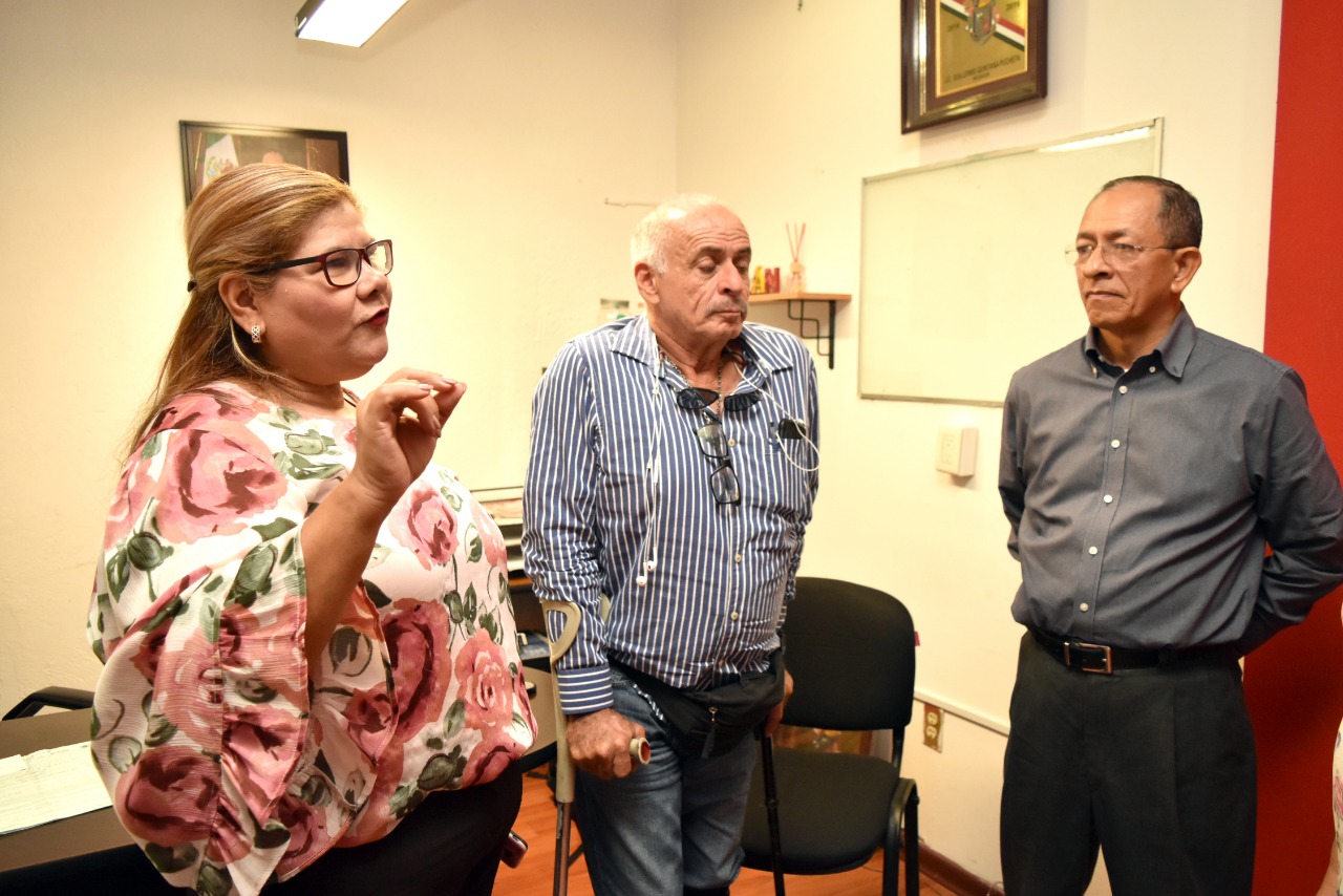 Joel Vargas Montes, Gonzalo Armienta y Martha Lourdes Camarena, directores de las facultades de Derecho de Mazatlán y Culiacán, respectivamente, y organizadores del congreso, se reunieron con el Alcalde Joel Bouciéguez Lizárraga para solicitarle el apoyo del Municipio para la realización del evento.