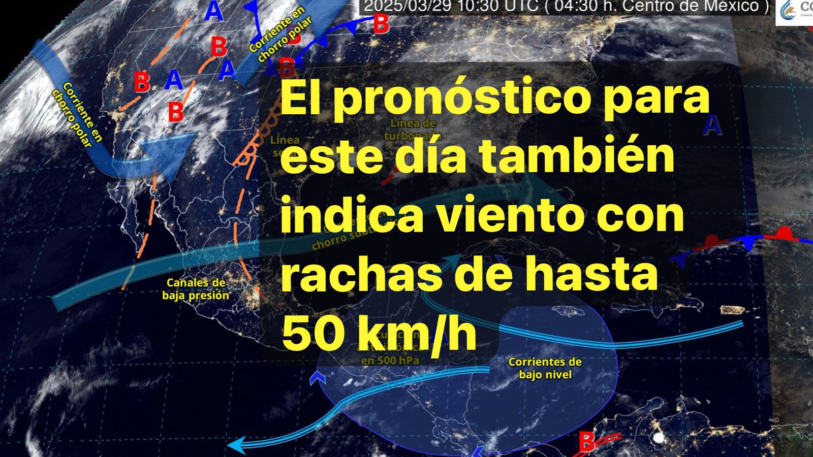 Por otra parte, una línea seca sobre el norte de Coahuila, en interacción con un canal de baja presión y con la corriente en chorro subtropical, ocasionarán vientos con rachas de hasta 80 km/h y tolvaneras en estados del noroeste, norte y noreste del territorio nacional.