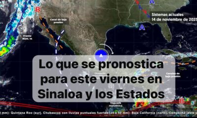México,14 nov. 2025.-Este día, canales de baja presión sobre el sureste mexicano, en combinación con el ingreso de humedad del golfo de México y mar caribe,...