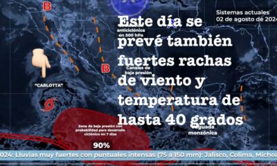 México,02 de Agosto del 2024.-Para hoy, el ciclón tropical Carlotta en el océano Pacífico, se alejará de costas nacionales, sin embargo, sus desprendimientos nubosos reforzarán el...