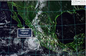 El pronóstico meteorológico para las próximas horas es de tormentas torrenciales en zonas de Jalisco y Colima; tormentas intensas en sitios de Michoacán, Guerrero, Oaxaca, Chiapas y Veracruz, y tormentas muy fuertes en regiones de Nayarit, debido a la Depresión Tropical 18-E y a una zona de inestabilidad con potencial de desarrollo ciclónico, ambas ubicadas en el Océano Pacífico, informó el Servicio Meteorológico Nacional (SMN), dependiente de la Comisión Nacional del Agua (Conagua), así como la Coordinación Nacional de Protección Civil de la Secretaría de Gobernación (Segob).