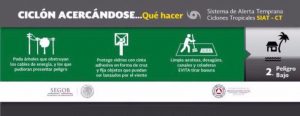 Debido a su cercanía con costas nacionales, el SMN en coordinación con el Centro Nacional de Huracanes de Miami, Florida, mantiene zona de vigilancia desde Manzanillo, Colima, hasta El Roblito, Sinaloa.