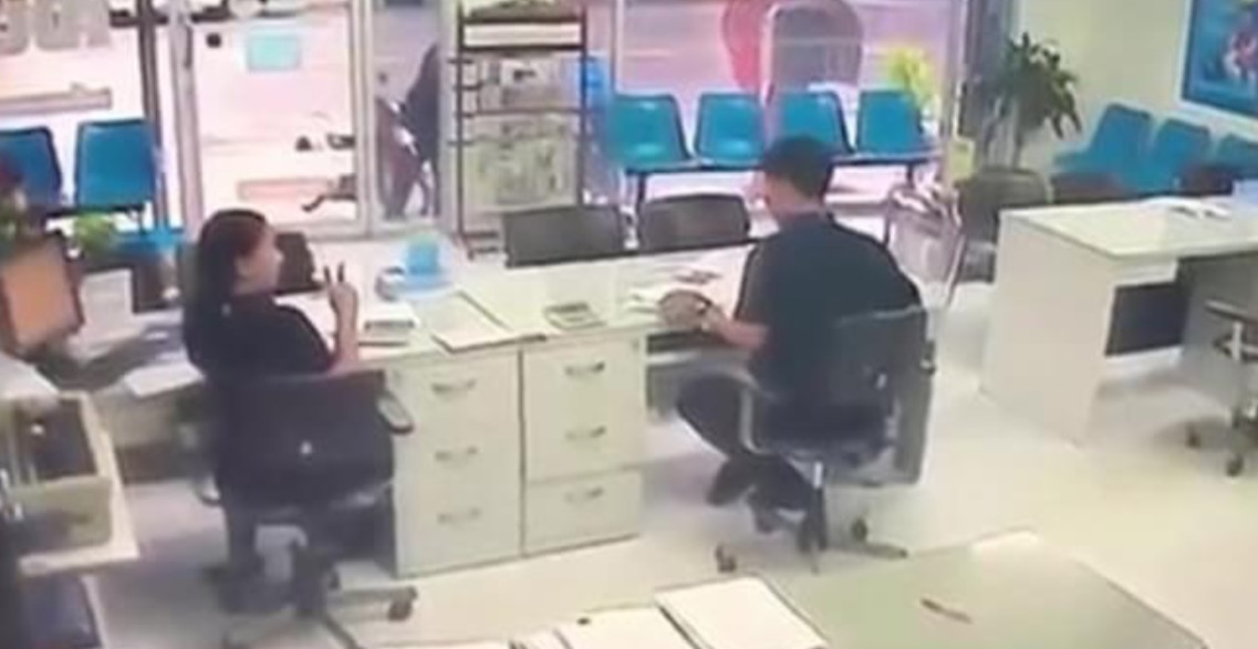 Circula en redes sociales el video tomado por una cámara de seguridad instalada en una oficina de Tailandia, que muestra cómo un hombre, después de que...