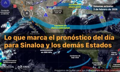 México,3 feb. 2026.-Hoy, el frente frío número 33 ingresará sobre el norte y noreste de México; interaccionará con una vaguada en altura y con la corriente...