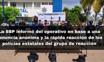Navolato, Sin. 23 oct.2025.-Detuvieron a civiles en posesión de diverso armamento, equipo táctico y dos vehículos, tras recibirse una denuncia anónima al 089 sobre hombres armados...