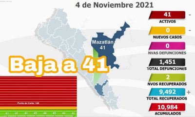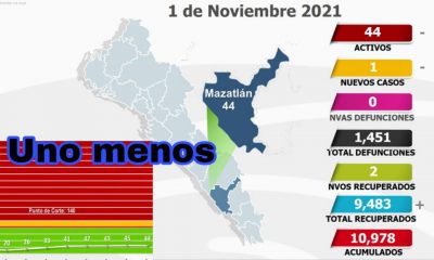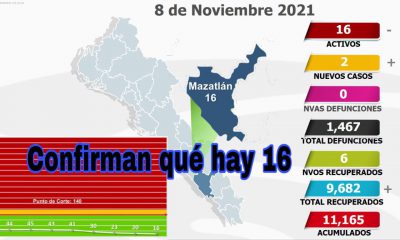 Mazatlán, noviembre 09 del 2021.- Este martes la ciudad alcanzó su mínimo histórico en casos activos Con un total de 16 pacientes del virus Sars-Cov-12, hoy...
