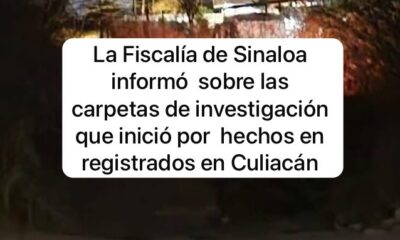 Culiacán, Sin,, 20 feb. 2025. – La Fiscalía General del Estado de Sinaloa informa que, el miércoles 19 de febrero, se registraron cuatro carpetas de investigación...