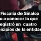 Culiacán, Sin., 9 sept. 2025. – La Fiscalía General del Estado de Sinaloa informa que el lunes 8 de septiembre se registraron cuatro carpetas de investigación...