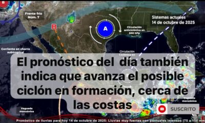 México,14 oct.2025.-Este día, canales de baja presión sobre el occidente del golfo de México, el sureste mexicano y la península de Yucatán, en interacción con una...