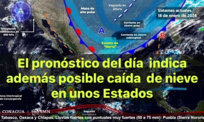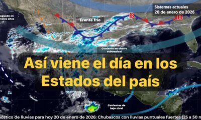 México, 20 ene. 2026.-Para hoy, una vaguada en niveles altos de la atmósfera en el noroeste y occidente de la República Mexicana, en combinación con la...