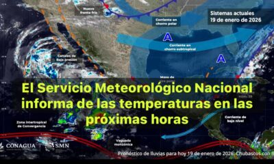 México,19 ene. 2026.-Este día, el frente frío número 29 se desplazará sobre el mar Caribe, sin afectar a la República Mexicana. sin embargo, su masa de...