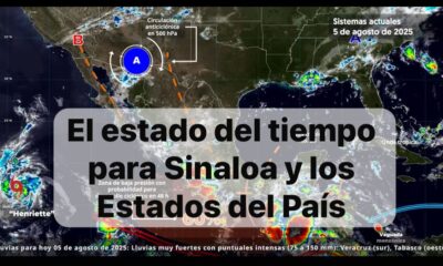 México a 05 de Agosto del 2025.-Para hoy, el monzón mexicano ocasionará chubascos con descargas eléctricas en Nayarit, Durango, Sinaloa, Chihuahua y Sonora. La onda tropical...