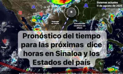 México,11 agosto 2025.-Para hoy, el monzón mexicano en combinación con inestabilidad atmosférica, originará lluvias puntuales fuertes en Nayarit, Durango, Sinaloa, Chihuahua y Sonora; lluvias con intervalos...