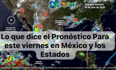 México,18 julio 2025.-Para hoy, una circulación ciclónica en niveles medios de la atmósfera sobre el noroeste de Baja California, en interacción con el monzón mexicano en...